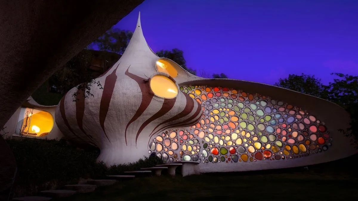 Esta vivienda elimina las líneas rectas y se construye mediante ferrocemento, una técnica que permite generar superficies curvas continuas. El desafío estructural radica en distribuir las cargas sin recurrir a columnas tradicionales, apoyándose en la geometría como elemento resistente.