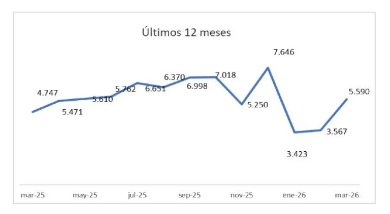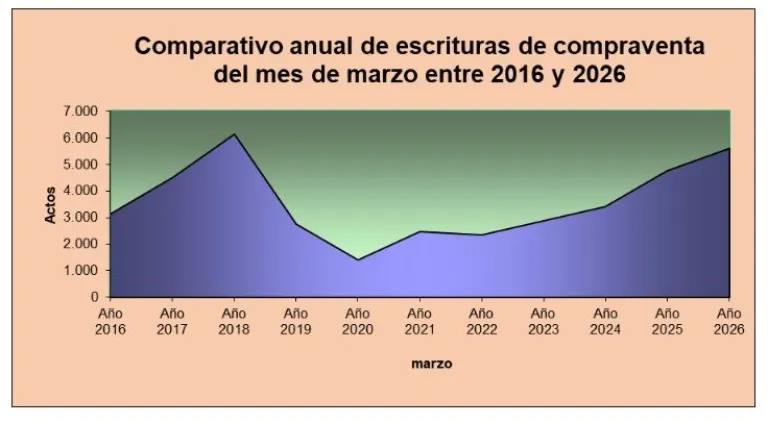 En términos mensuales, el repunte fue aún más marcado. Frente a febrero de 2026, cuando se contabilizaron 3.567 escrituras, marzo registró una suba del 56,7%, consolidando una recuperación significativa en la dinámica de operaciones.